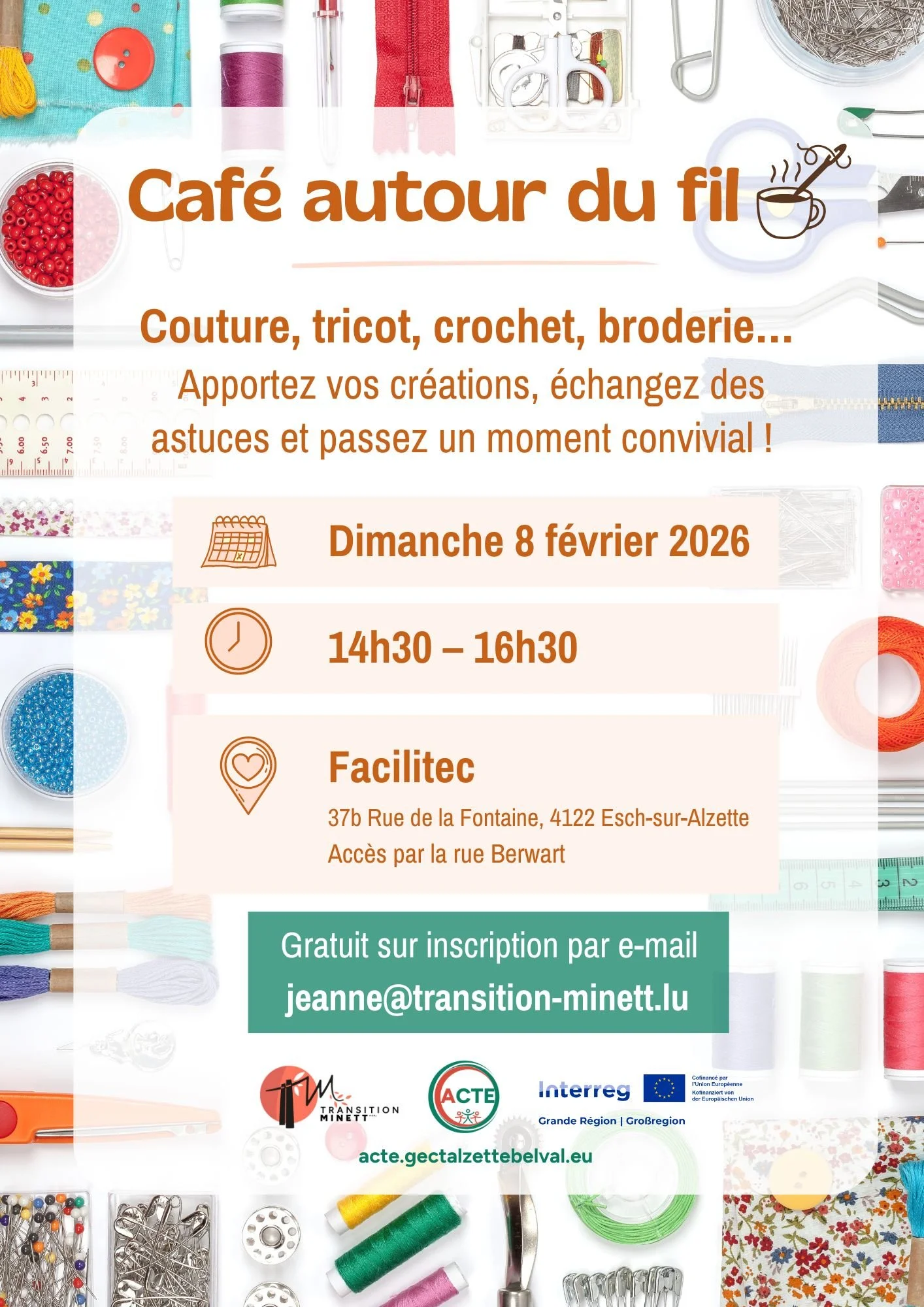 Starting in February, Facilitec will host a new monthly gathering for enthusiasts of sewing, knitting, crochet, embroidery, and other needle arts. Designed as a space for meeting, sharing, and mutual support, this needlework café is open to anyone who enjoys creating with their hands and passing on their skills.