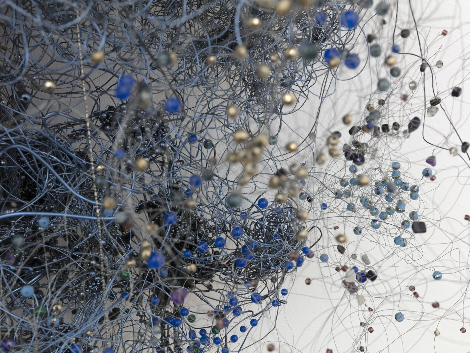 Igshaan Adams: Between Then and Now was conceived as a woven timeline of the artist’s work, embedded with residues of history and echoes of his past. Raised in Bonteheuwel, a township established during apartheid-era segregation, Adams navigated the tensions of a deeply divided society and grew up at the intersection of conflicting identities. These experiences deeply inform his practice, which often explores the spiritual dimensions of healing and transformation.